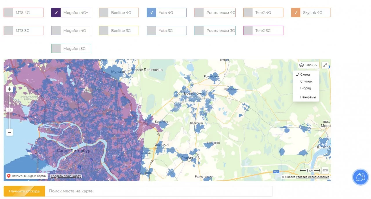 2. Включим слой "Megafon 4G" на карте покрытия.